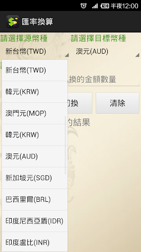 實時匯率轉換,多種貨幣顯示,支持人民幣、美元、歐元、日元、港幣、新臺幣,韓元,英鎊,加元,印度盧比等多種主要貨幣。支持雙向互換, 數據實時更新。