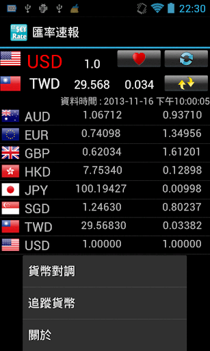 可以按下愛心按鈕,設定自己常看的幾個貨幣,中央列表就會轉成只顯示這幾個貨幣,不用每次翻頁翻很久。