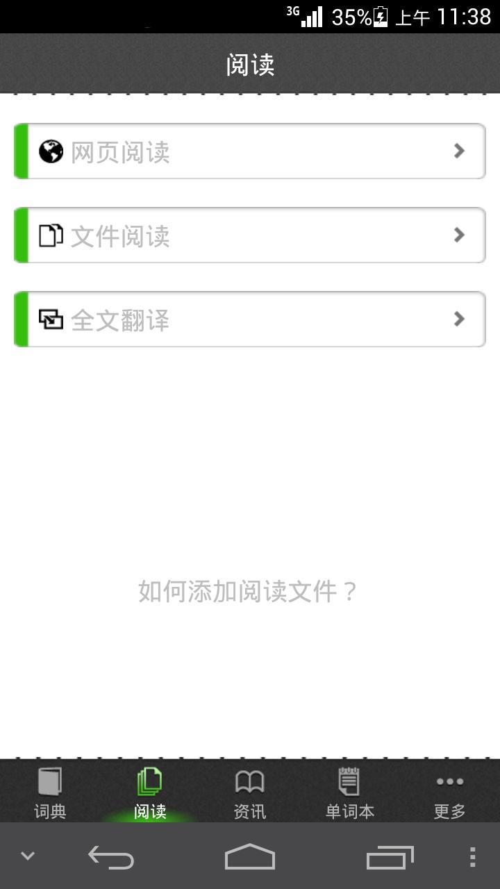 2.内容阅读:阅读英文网页,难免碰到晦涩难懂的单词,不用怕,只需轻轻一点,权威解释立刻呈现!目前文件阅读功能只支持pdf格式文件。