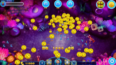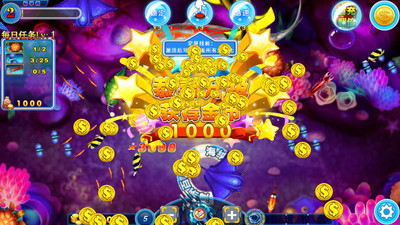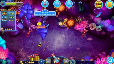 《千炮狂鲨》是新概念的捕鱼游戏,在游戏设计和玩法上都独具风格。打破传统捕鱼游戏设计,生动的游戏画面,栩栩如生的海洋生物,美丽的鱼儿在你身边畅游, 带你畅游在精彩的海底世界。 在这里,你可以肆意捕捞各种鱼,赢取海量金币,享受无限的海洋风光;在这里,每一发炮弹,每一张网都将织就你在这片海域的征服之路! 超大炮数让玩家在捕鱼过程中有更酣畅淋漓的感觉。超大BOSS海皇会定时出来惊扰整个海底世界,玩家可用急速、定屏、锁定三种特殊技能攻下海皇。 游戏内有三大特色,提升游戏趣味性,给玩家创造金币回馈的机会。每日渔夫任务、倍数转盘、海皇入侵