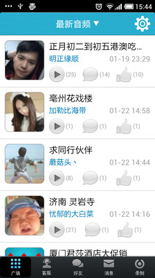顿时欢欢脸上露出几分向往,快速点开了小美的主页,看到小美音频中不但有很多旅程中趣事,也有很多与驴友们的亲切互动。欢欢一条一条的听着,感受着莫名的欣喜,小美的声音很真实,声音传递着她在旅程的各种奇闻轶事,不管是只卖到中午的沙茶面,还是晴天才开门的冰淇淋店。欢欢越听越兴奋,这些即时的消息让她恨不行立即买张机票去找小美。她回给小美说“放心,我下一个假期的目的就是厦门”。