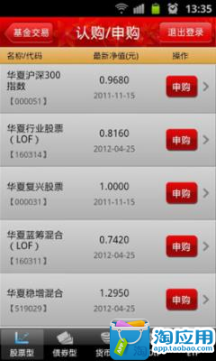 华夏基金android版,集账户查询、产品中 心、华夏资讯、网点查询、活动动态、理财课堂、行情查询等九大常用功能为一体,在您浏览最全面的基金信息、专业丰富的财经资讯、最新的理财讲座活动等信息 的同时,可以随时分享及收藏您感兴趣的信息,并有深浅两种界面供您挑选,华夏基金让您的理财轻松便捷、安全及时!基金理财,尽在掌握!