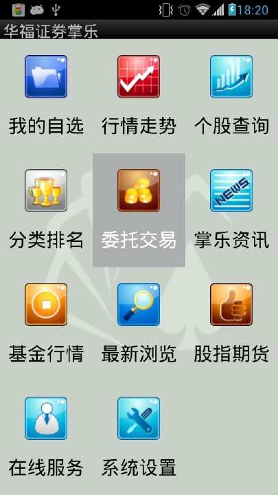 基于手机界面特点和人性化使用原则,掌乐菜单简洁直观、功能全面,您只须滑动手指即可根据菜单提示轻松进行在线行情、资讯查询以及委托交易。