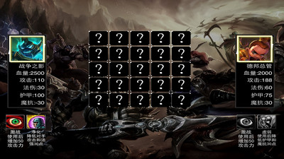已方英雄和对手英雄的8个技能加上随机的道具抽取游戏方式,抽到强力的技能或道具来打败对手吧