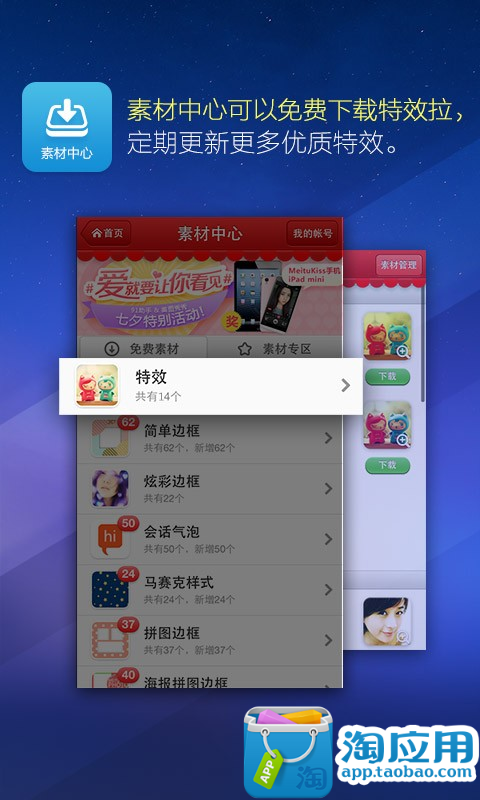 4.素材中心 免费使用海量高品质个性素材,每周不断更新
