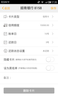 2、实景卡片管理,每张卡片对应一张信用卡,多张卡帮你轻松Hold住;