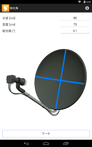 如果您决定用椭圆形偏斜天线,您只需要输入极化角或天线的长度和宽度。然后,这个应用程序将使所有数据正确地对准您的卫星系统。现在,所有必需角度都可以进行自动计算。