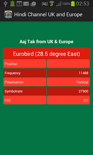 一個按字母順序排列的列表與印地文頻道英國和歐洲的通道Sattelite頻率。