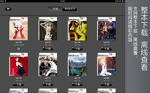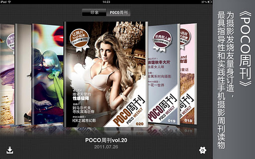 由网络发行量最大的视觉杂志《印象》月刊和《POCO周刊》组成,获苹果店5月综合下载排行前十、摄影类第一!