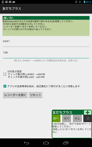 7.記録が終わったら「友だち追加」画面で「実行」ボタンを押してください.