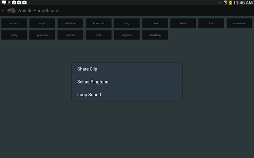 一個三星Galaxy S II,宏碁A500平板電腦,Android模擬器上測試了口哨音板,我知道它在這些設備上正常工作。如果您的設備有問題,讓我知道,我會盡量盡快解決這些問題。感謝您試圖的口哨音板(Whistlin的應用程序)和快樂呼嘯!