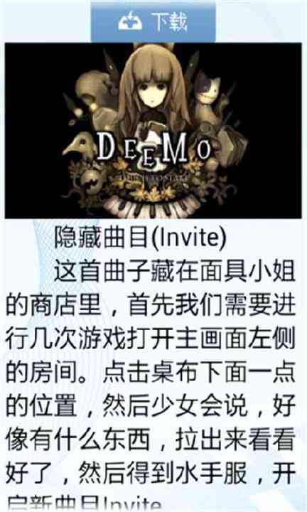 《古树旋律 Deemo》是一款音乐游戏,从天而降,遗失了过去的少女,孤独在树屋世界e演奏钢琴的Deemo,两人意外的邂逅。指尖下敲响的琴弦之音,推开了童话旅程的序幕..."转身离开之前,别忘了说最后一次再见"-随着游戏进程解开更多曲目,发掘前所未有的故事体验,网罗全世界的原创乐师,带来各种不同风格的钢琴原创歌曲,总共收录33首以上歌曲,每首歌曲3种难度,99种以上谱面组合,经典直觉的游戏系统,钢琴琴键音,完美真实的演奏感,陪着Deemo徜徉在现代童话般的美丽剧情中,探索场景,拼凑出剧情线索、获得游戏中的隐藏要素,游戏已经解锁了完整版和两个歌曲包。以下为各位玩家带来高手攻略!