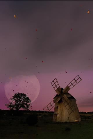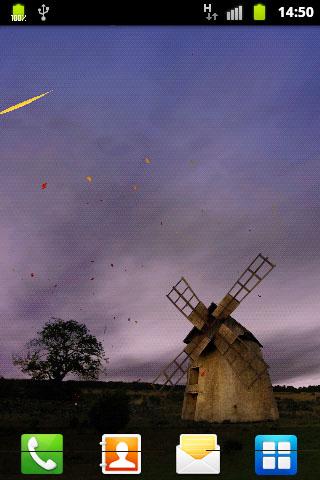 逼真的動態壁紙紡的老風車。紅葉通過空氣中的漩渦,雲趕過來的天空,你可以決定設置一個特定的時間來改變的天空和雲彩的顏色,或使用實時現場的牆紙轉變顏色,使白天和晚上。