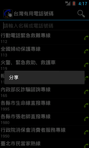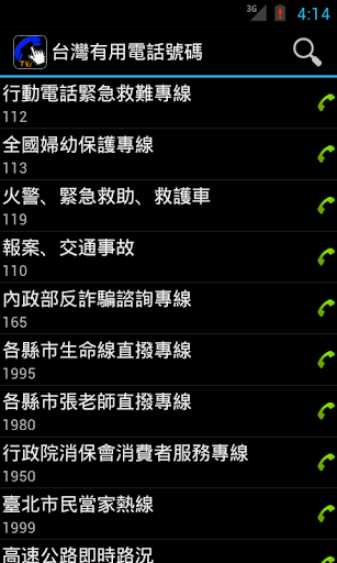 台灣有用電話號碼 - 是一個簡單而又搜集了各類有用電話號碼的應用。方便用家速查電話號碼及減省找尋的時間。找到目標電話號碼之後,只要一按即可打出電話。同時,又提供了搜尋及分享功能。