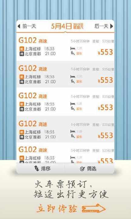 “114商旅”是一款以实时查询并在线预订全国机票、酒店、火车票为主线的手机应用,同时免费提供航班定制与手机选座功能,为消费者商旅出差、旅游出行提供更为便捷的服务。