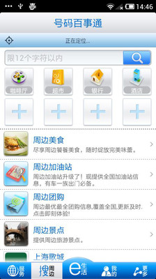 “号码百事通”是生活信息导航手机软件,提供生活相关信息查询预订“e生活”、位置周边搜索“搜周边”、综合娱乐社区“I娱乐”三大服务功能板块,涵盖114查号、订机票、订酒店、彩票购买、电子阅读、团购、优惠券、本地资讯、游戏娱乐等,为您提供一站式无线生活优质服务指南。号码百事通由号百信息服务有限公司出品,可以保证服务的专业和内容的权威。