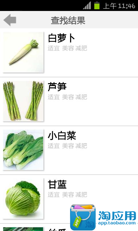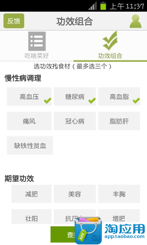 “吃啥菜—健康饮食“是您所需要的功效食材查询小工具。