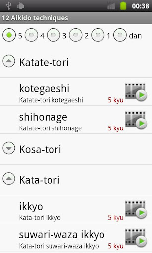 該程序包含一個目錄名合氣道技術(174)和12技術的視頻。