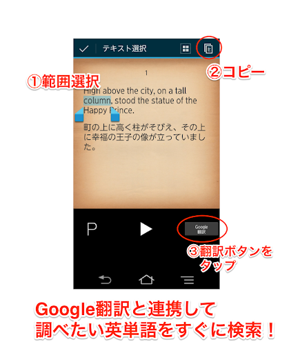 分からない英単語をすぐに辞書がわりに翻訳!(Google翻訳アプリのインストールが必要です)