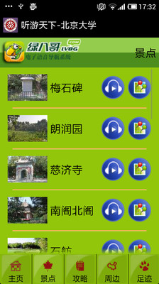 绿八哥以自动,精准,专业的真人语音导游,陪您一起逛北大,揭开这中国第一大学的神圣面纱。