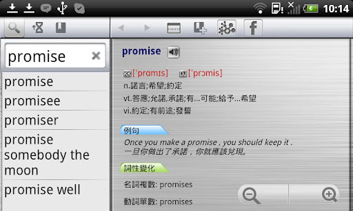 ‧收录常用词性变化,例如:名词复数、动词单数、现在分词、过去式