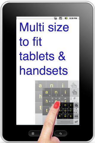 請注意,您可以通過拖動手按鈕向上/向下改變鍵盤尺寸。您還可以重塑,並以不同的方式重新著色的鍵盤。請參閱“設置的詳細信息。