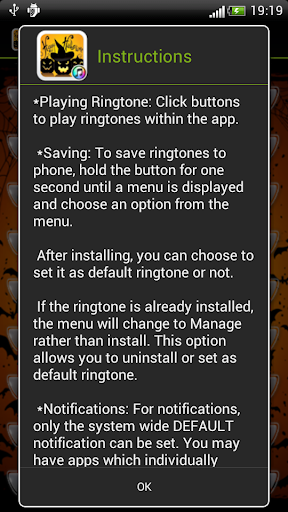 *安裝鈴聲:要將鈴聲保存到手機上,您只需長按按鈕1秒,當彈出菜單後選擇相應的選項即可。安裝之後,您可以根據你的需