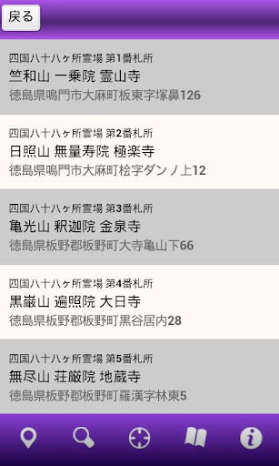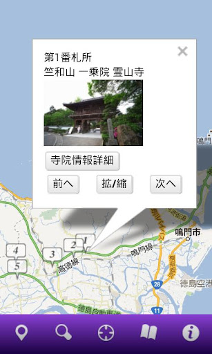 現在地周辺の霊場を簡単な操作で探すことができ、キーワードや霊場リストから検索する事も可能です。