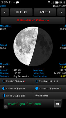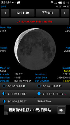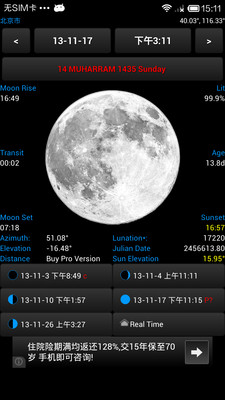 - 综合月球的信息,包括具体的月出,月亮交通和月落。