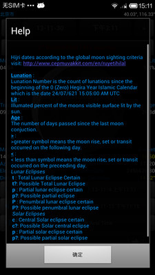 它可以计算出回歷看见了新月的全球会议的标準。月亮地球伸长率的角度被定义為8度。