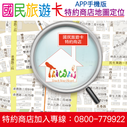 以衛星定位方便公務人員查詢附近國民旅遊卡特約商店所在,更容易查詢國民旅遊卡特約商店店家食、衣、住、行、育、樂等優惠訊息及導航。