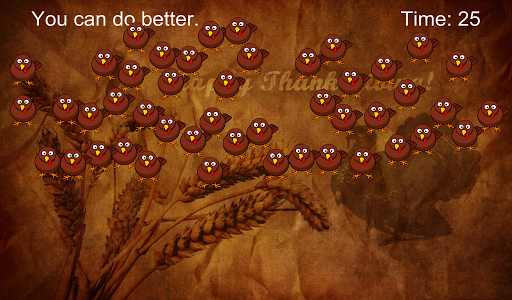 争分夺秒弹出所有的飞行火鸡。如果您喜欢我们的气球流行的游戏,你一定会喜欢这个感恩节时的经典。尝试了三种不同的困难。美丽的秋天秋天的背景和冷静的声音效果狼吞虎咽狼吞虎咽。