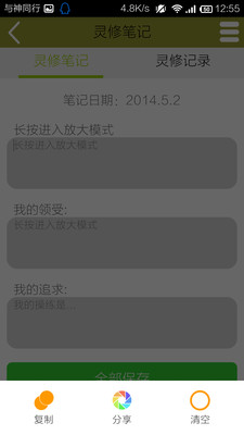 2:灵修笔记功能,可以记录每天的灵修情况,方便进行查看,分享,删除,备份,恢复。