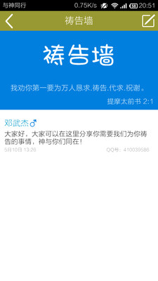3.祷告墙,注册并登录用户可在祷告墙分享自己的祷告事项。