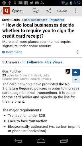 备受欢迎的在线知识问答网站Quora发布了自己的首款安卓应用——Quora for Android。Quora集合许多问题和答案,也容许用户协同编辑问题和答案。 Quora创建目标是,挖掘出网络上未有的维基知识,并赋予其强烈的社会媒体属性。