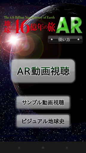 当アプリには<AR動画視聴><サンプル動画視聴><ビジュアル地球史>の3種機能があります。