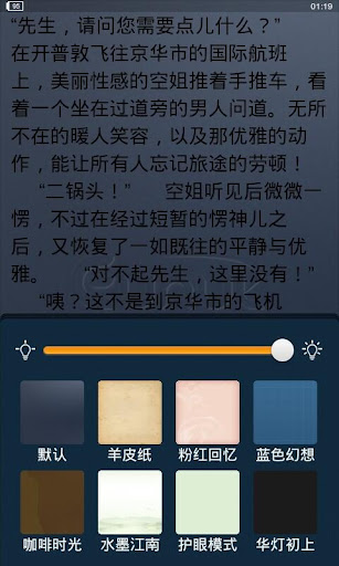5)多种阅读模式可供选择,随意设置字体大小、屏幕亮度;横竖屏切换、自动滚屏;尽可能的满足你的阅读习惯。