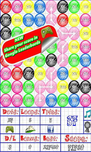 你的任務是盡可能多地連接相同顏色的圓點以清除他們,使盡可能多的循環,你可以在不同的線路,如循環可以是三角形,正方形,五邊形等,以獲得最高評分。還有,你可能知道,環越大越大得分。