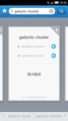 历经四年,全国近百位词典编撰专家倾心打造,《外教社英汉汉英天文学词汇手册》2009年3月第1版手机版同步发行。软件收录了天文学基本词汇(英汉、汉英双向收词14000余条),是天文学专业必备手册。海词词典(中国第一个在线词典dict.cn)携手外教社官方权威正版发布,具备手机上最便捷的查词功能(摄像头查词、语音查词等),还有清晰发音、生词收藏、生词辅助记忆等学习功能。选择高品质词典和词汇手册,学习更有保障!(版权所有,盗版必究)
