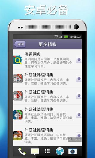 互联网时代词典软件,是最受欢迎的词典软件,内置超过340,000条英汉词汇以及超过350,000条的汉英词汇,功能包括有声词典,维基百科词典,并且支持无限扩展,多语种词典学习,一款应用省去您东奔西走,移动应用满足您走到哪看到哪的愿望。...