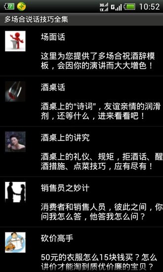 新年会参加许多场合,场合话就是您的必备咯!史上最全的多场合讲话技巧集锦!50余种场面话,酒桌上的礼仪、规矩、讲究、点菜技巧;砍价的流程、方法、技巧;应聘面试全方位回答技巧有了多场合说话技巧全集,公共场合下你不会再惧怕无话可讲,而且讲话内容具体到位,生动切实,手到擒来!