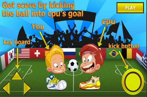 大头足球世界杯来了!大头足球精美的游戏画面以及简单易操作的游戏玩法一定会让你爱不释手!游戏中只要操作方向键就可以移动大头。点击屏幕右下方的射门按钮开始射门。连续进球就能让你在排行榜上排名靠前。对手进球则游戏结束。