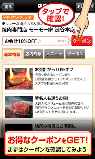 全国の焼き肉店情報やクーポン情報がたくさんのってバッチリのこのアプリを使って