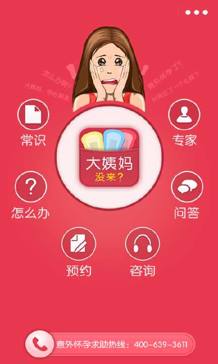与其各种假设、各种计算、各种烧香拜佛,不如立即使用'大姨妈还没来'应用程序了解您是否意外怀孕。该应用程序是您贴身的紧急避孕手册。帮助您分析是否意外怀孕,并在确认后,提供有效紧急避孕手段。一旦意外已经无可更改,该应用还贴心设置了专家咨询版块,帮助您在线了解人流技术。