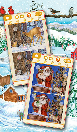 測試您的大腦的視覺技巧,看看您是否能找到這些華麗圖畫的差異。找出聖誕老人下煙囪時后面聖誕樹裝飾品的差異-還是那些在屋頂上的馴鹿擁有額外的鹿角?享受此節日與那些動物在森林雪地上跳舞,歡樂的冰霜雪人和美味的聖誕裝飾餅干等24種不同的假日關卡!您將會在您訓練您的大腦的同時愛上的這季節性的音樂,訓練在貓、 狗、 老鼠、 鹿、 兔子、 鳥和那些在白雪皚皚的冬季仙境裡嬉戲、 滑冰的孩子們的的圖片中查找的微妙差異。大量的彩薄荷糖和糖果,凍結的雪花,塞滿禮物的襪子和毛手套將為大人和小孩帶來不同家庭假日!
