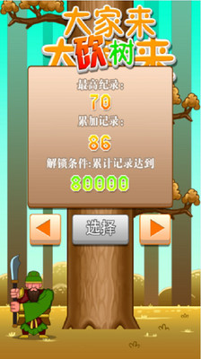 《大家来砍树》比拼敏捷,眼力与脑力。变幻莫测,包容万千,点击屏幕左右砍树,注意不要碰到树枝。更有孙悟空,关二哥等20大隐藏人物为您效劳,大家来砍树,一起争做砍树英雄榜第一把交椅!