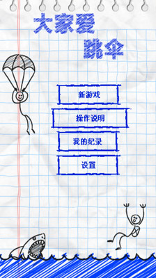 大家爱跳伞游戏是一款非常休闲又具有冒险精神的小游戏。游戏的画面是涂鸦风格,易上手,游戏为单一的触屏控制。用手指点击跳伞后的人物,即可打开降落伞,然后用手指划动来产生气流————上升、下降、左右等。利用这些气流控制小人,保证他们能可以安全降落到海面上的船上。注意事项:当有红色箭头出现时,请当心直升机,碰上会被螺旋浆搅个粉碎;当心飞碟。