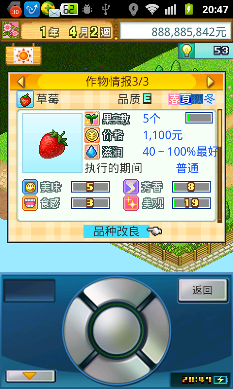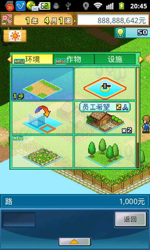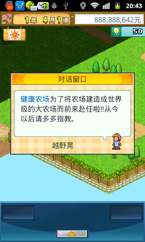 《大空公顷农场》是开罗最新出品的模拟经营游戏。游戏已修改初始金钱为8亿+!让人向往的农场生活现在就要开始了。用爱心把农作物培育成长吧,然后到附近的商店把你的农作物卖掉,获得金钱继续投资开发你的农场。此外,你的农场还可以作为观光地点,发展农家乐等项目。打造自己的农场品牌,目标是成为宇宙第一庄园吧。