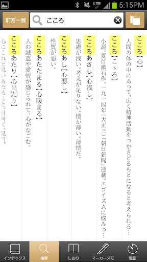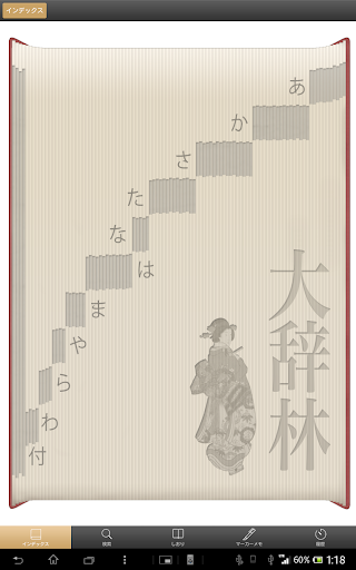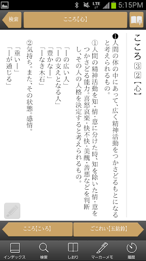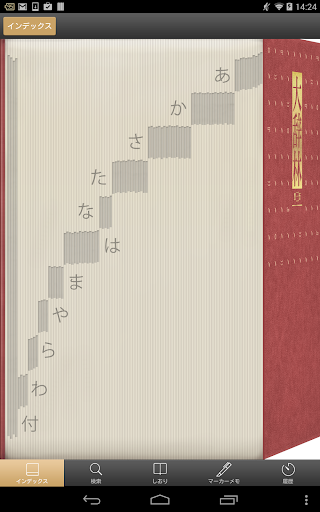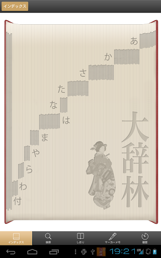 主な特長は、日本語の美しさや見やすさを大事にする「縦書き表示」、紙の辞典をめくるような感覚の「インデックス検索」、ページをパラパラめくる感覚の「ページめくり」、使い込むごとに自分だけの辞典に仕上げる「マーカーメモ」や「しおり」、一字入力するごとに検索候補を絞り込む「インクリメンタルサーチ」などで、言葉を散策する楽しみも味わえる、大辞林アプリの決定版です。