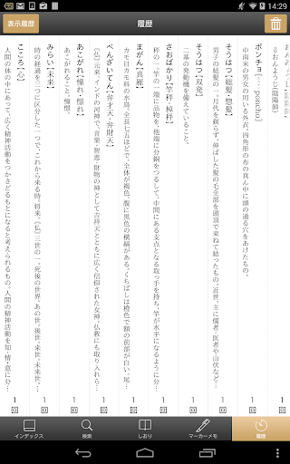 目的の言葉まで、タップとスライドだけで辿りつけます。見出し語一覧を眺めながら気になる言葉を探せます。
